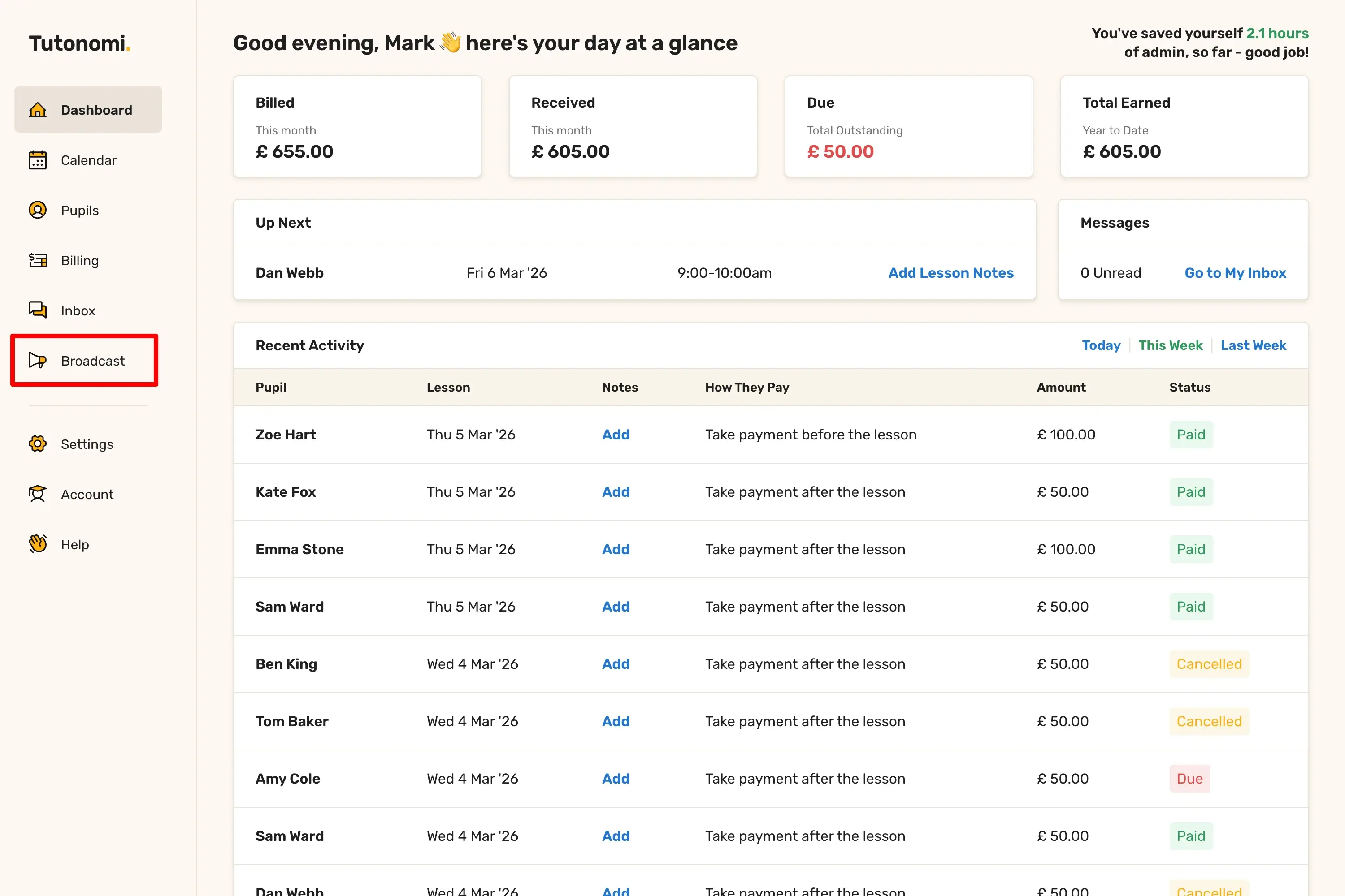 Here's how to send a message to a group of pupils at once using Broadcasts.